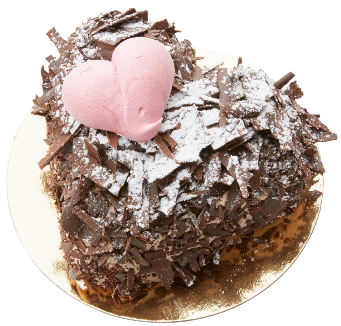 Meringue, chocoladeslagroom, omhuld met chocoladeschilfers.